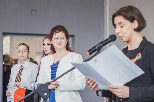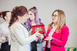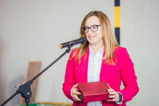 Gdańsk, ul. Prezydenta Lecha Kaczyńskiego. 50-lecie Zespołu Szkół Kreowania Wizerunku. Nz. Agnieszka Owczarczak - Przewodnicząca Rady Miasta Gdańska