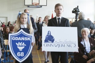 Uroczystość 50-lecia szkoły, początkowo Szkoły Podstawowej nr 68, obecnie Gimnazjum nr 2 im. Jana Heweliusza. Gdańsk Siedlce, ul. Kartuska