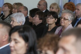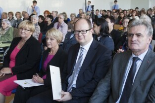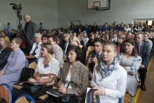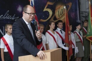 Uroczystość 50-lecia szkoły, początkowo Szkoły Podstawowej nr 68, obecnie Gimnazjum nr 2 im. Jana Heweliusza. Gdańsk Siedlce, ul. Kartuska. Nz. Prezydent Gdańska Paweł Adamowicz