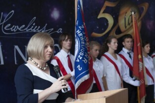 Uroczystość 50-lecia szkoły, początkowo Szkoły Podstawowej nr 68, obecnie Gimnazjum nr 2 im. Jana Heweliusza. Gdańsk Siedlce, ul. Kartuska. Nz. Dyrektor Gimnazjum nr 2 Dyrektor Gimnazjum nr 2 Małgorzata Perzyna