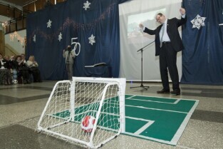 Oficjalne otwarcie 50. boiska ze sztuczną nawierzchnią. Gdańsk Zaspa, ZKPiG nr 13 przy ul. Startowej. Nz. Prezydent Gdańska Paweł Adamowicz