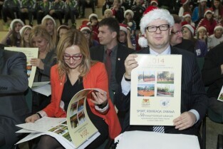 Oficjalne otwarcie 50. boiska ze sztuczną nawierzchnią. Gdańsk Zaspa, ZKPiG nr 13 przy ul. Startowej. Nz. od lewej: Wiceprzewodnicząca Rady Miasta Gdańska Agnieszka Owczarczak, Prezydent Gdańska Paweł Adamowicz, Dyrektor ZKPiG nr 13 Alicja Najda