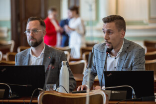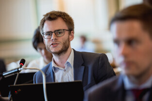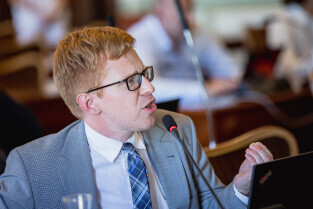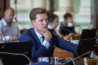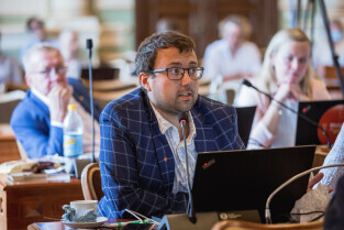 Gdańsk, ul. Wały Jagiellońskie. 52. sesja Rady Miasta Gdańska. Nz. Radny Przemysław Majewski