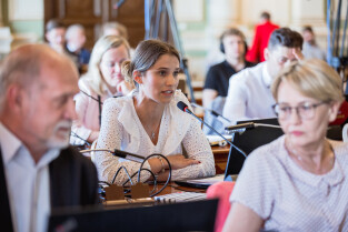 Gdańsk, ul. Wały Jagiellońskie. 52. sesja Rady Miasta Gdańska. Nz. Monika Chabior, zastępczyni prezydenta Gdańska ds. rozwoju społecznego i równego traktowania