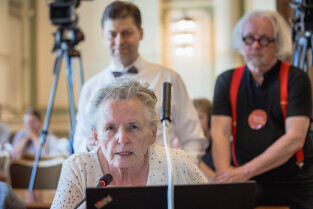 Gdańsk, ul. Wały Jagiellońskie. 52. sesja Rady Miasta Gdańska. Nz. Radna Emilia Lodzińska
