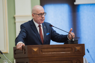 Gdańsk, ul. Wały Jagiellońskie. 53. sesja Rady Miasta Gdańska. Nz. poseł Piotr Adamowicz