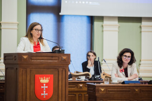 Gdańsk, ul. Wały Jagiellońskie. 53. sesja Rady Miasta Gdańska. Nz. wiceprezydent Monika Chabior
