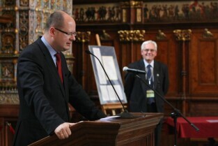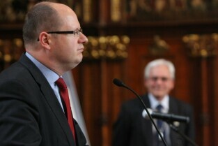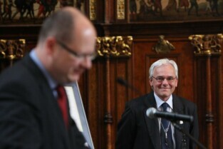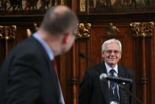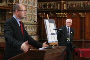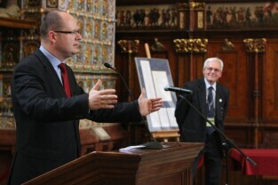 55 - lecie ZOO Gdańsk Wybrzeże. Uroczysta gala w Dworze Artusa. Nz. Prezydent Gdańska Paweł Adamowicz i dyrektor ZOO Michał Targowski (na drugim planie)