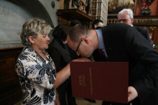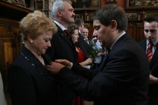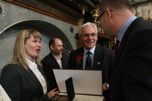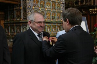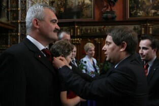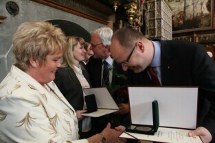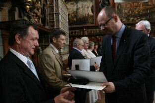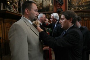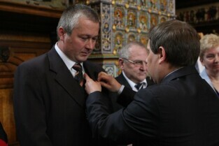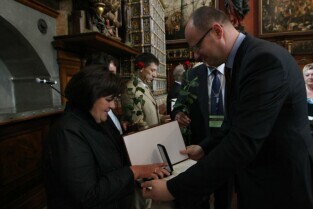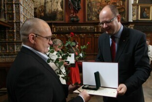 55 - lecie ZOO Gdańsk Wybrzeże. Uroczysta gala w Dworze Artusa. Nz. odznaczenia dla zasłużonych pracowników wręcza Wicewojewoda Pomorski Michał Owczarczak