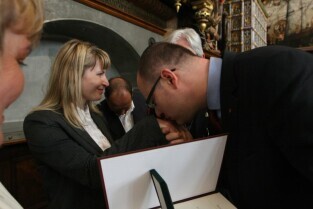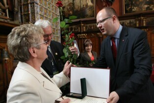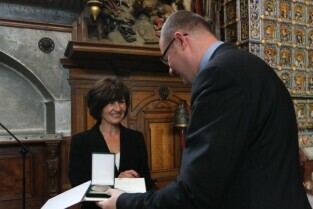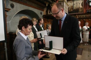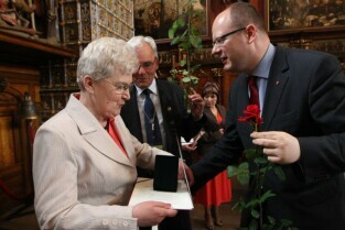 55 - lecie ZOO Gdańsk Wybrzeże. Uroczysta gala w Dworze Artusa. Nz. odznaczenia dla zasłużonych pracowników wręcza Prezydent Gdańska Paweł Adamowicz