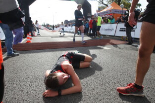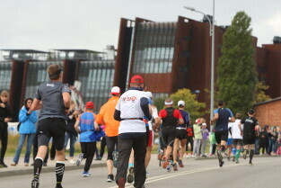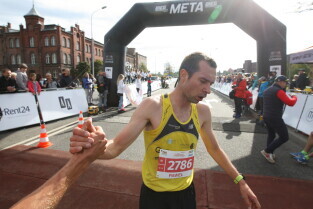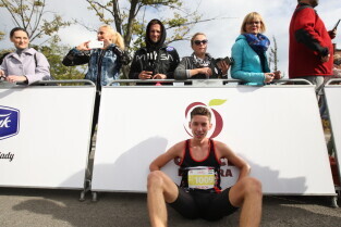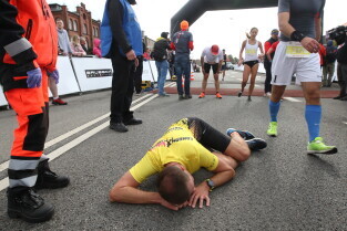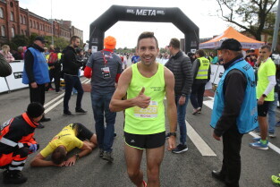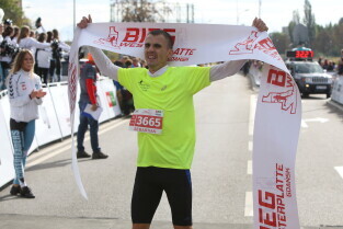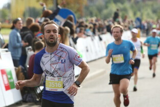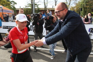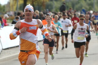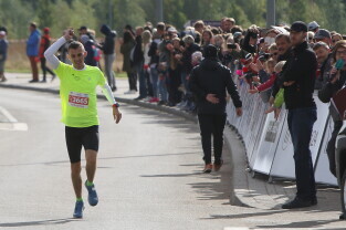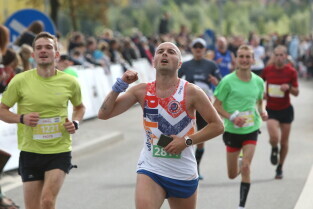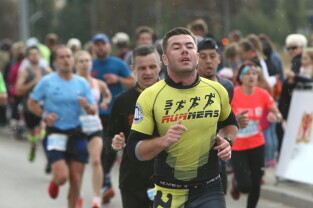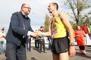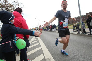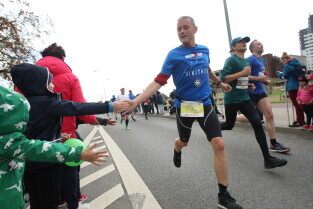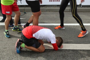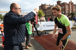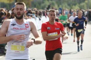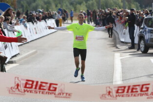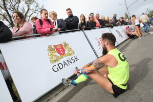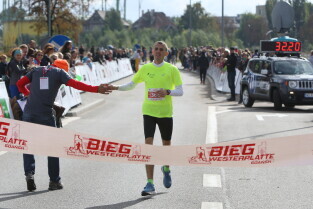 Gdańsk. 56. Bieg Westerplatte dla Niepodległej. Nz. Sebastian Wąsicki zwycięzca biegu.
