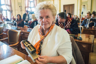 Gdańsk, Nowy Ratusz. 59. sesja Rady Miasta Gdańska. Nz. Radna Teresa Wasilewska
