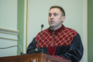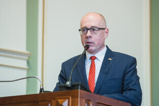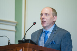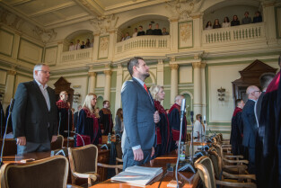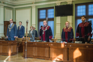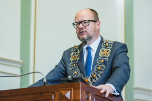 Gdańsk, Nowy Ratusz. 59. sesja Rady Miasta Gdańska. Nz. Prof. Cezary Obracht-Prondzyński