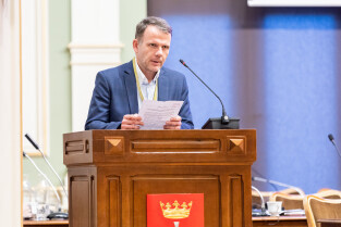 Gdańsk, ul. Wały Jagiellońskie. 59. sesja Rady Miasta Gdańska. Nz. Wiceprzewodniczący Rady Miasta Piotr Gierszewski