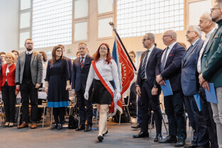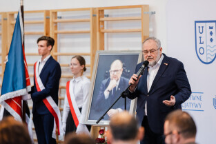 Gdańsk, ul. Traugutta. 5. rocznica śmierci prezydenta Gdańska. Dzień Patrona - Uniwersyteckie Liceum Ogólnokształcące im. Pawła Adamowicza. Nz. poseł Piotr Adamowicz