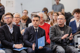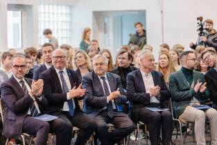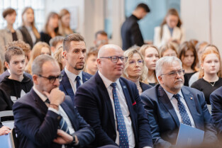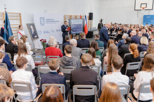 Gdańsk, ul. Traugutta. 5. rocznica śmierci prezydenta Gdańska. Dzień Patrona - Uniwersyteckie Liceum Ogólnokształcące im. Pawła Adamowicza. Nz. prof. dr hab. Piotr Stepnowski
