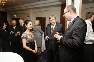 Uroczysta gala z okazji 62. rocznicy powstania Chińskiej Republiki Ludowej. Gdańsk, Hotel Scandic. Nz. Konsul Generalny Chińskiej Republiki Ludowej w Gdańsku Xiang Zaosheng i Prezydent Gdańska Paweł Adamowicz