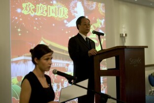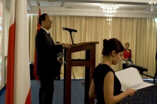 Uroczysta gala z okazji 62. rocznicy powstania Chińskiej Republiki Ludowej. Gdańsk, Hotel Scandic. Nz. Konsul Generalny Chińskiej Republiki Ludowej w Gdańsku Xiang Zaosheng