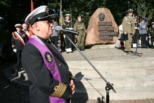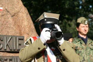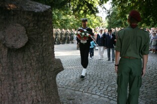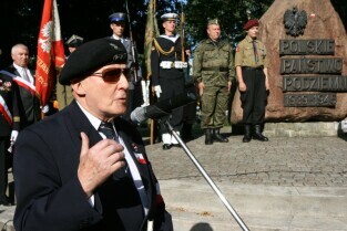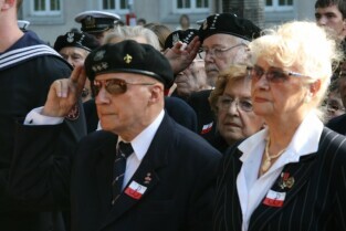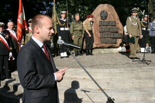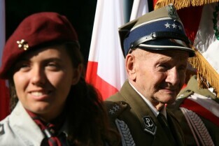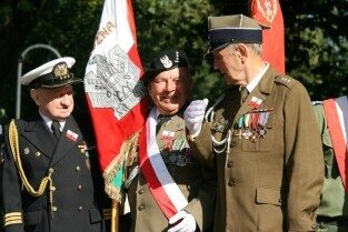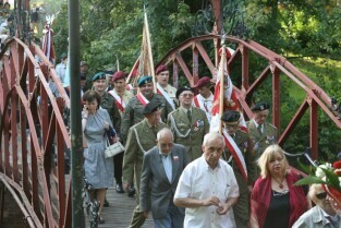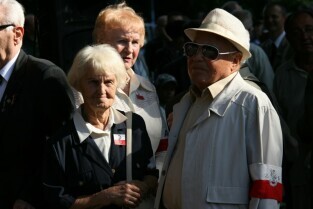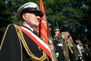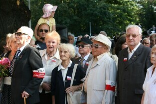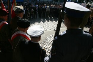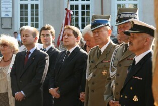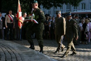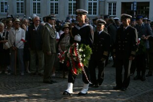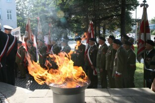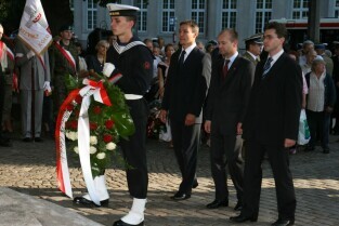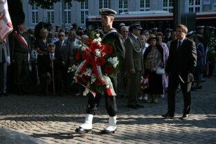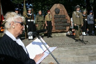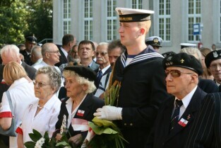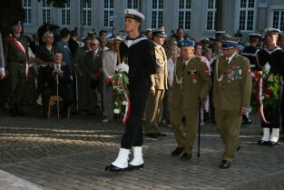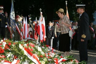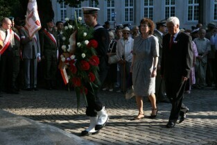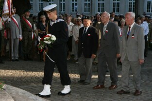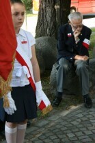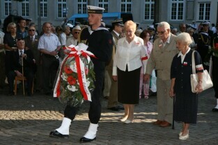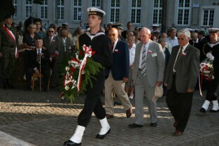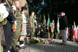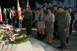 65. rocznica Powstania Warszawskiego. Uroczystości pod pomnikiem Polskiego Państwa Podziemnego i Gdańskich Harcerzy. Gdańsk, Targ Rakowy