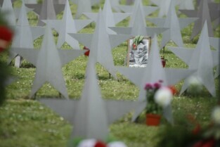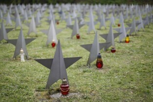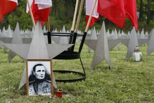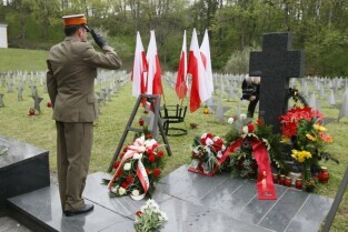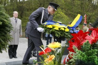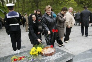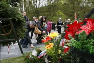 Obchody 65. rocznicy zwycięstwa nad faszyzmem - składanie wieńców i zniczy na Cmentarzu Żołnierzy Radzieckich w Gdańsku