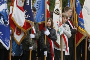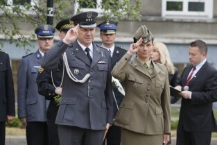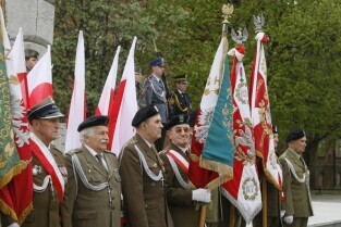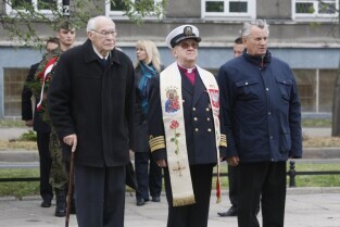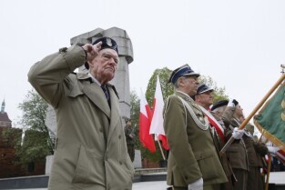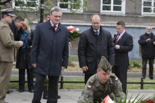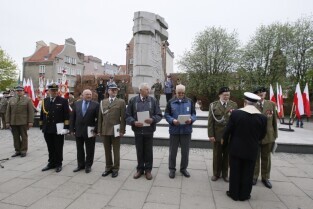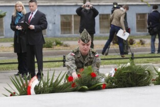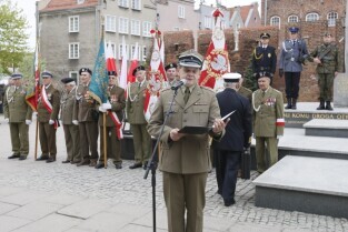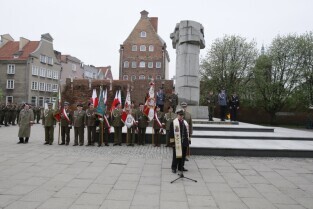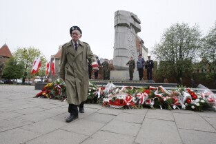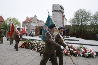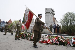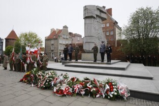 Gdańskie obchody 66. rocznicy zakończenia II Wojny światowej. Pomnik "Tym co za Polskość Gdańsk" przy ul. Podwale Staromiejskie