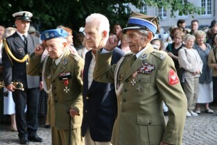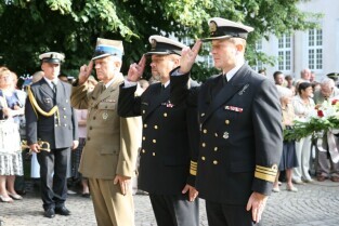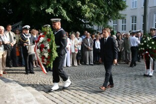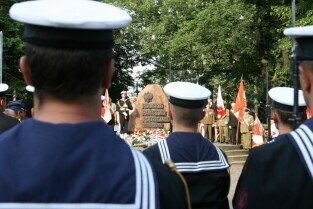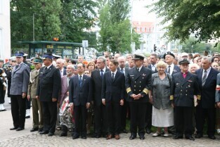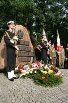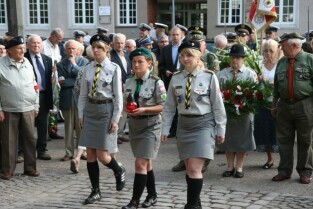 Uroczystości z okazji 68. rocznicy wybuchu Powstania Warszawskiego pod pomnikiem Polskiego Państwa Podziemnego na Targu Rakowym w Gdańsku.