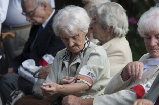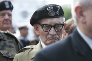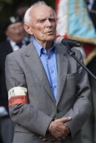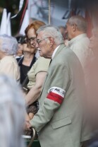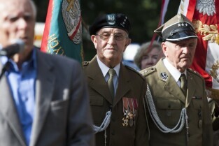 Uroczystości z okazji 68. rocznicy wybuchu Powstania Warszawskiego pod pomnikiem Polskiego Państwa Podziemnego na Targu Rakowym w Gdańsku. Nz. Prezes Okręgu Pomorskiego Światowego Związku Żołnierzy Armii Krajowej por. Jerzy Grzywacz