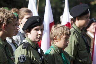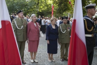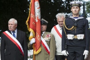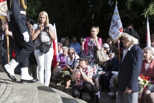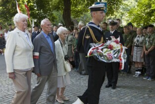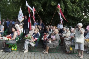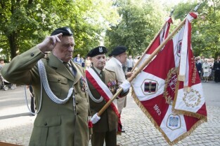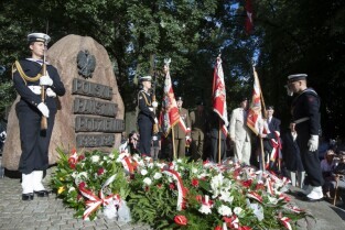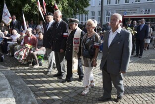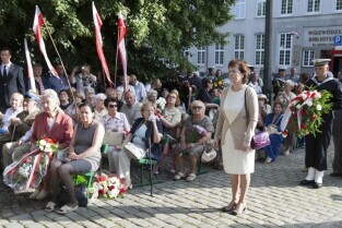 Uroczystości z okazji 68. rocznicy wybuchu Powstania Warszawskiego pod pomnikiem Polskiego Państwa Podziemnego na Targu Rakowym w Gdańsku