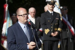 Uroczystości z okazji 68. rocznicy wybuchu Powstania Warszawskiego pod pomnikiem Polskiego Państwa Podziemnego na Targu Rakowym w Gdańsku. Nz. Prezydent Gdańska Paweł Adamowicz