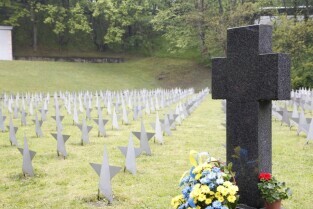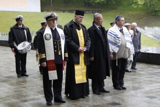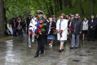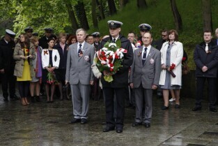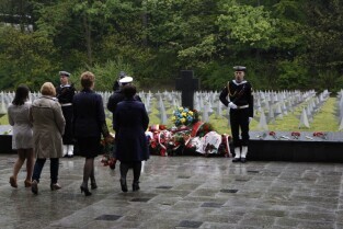 Obchody 68. rocznicy zwycięstwa nad faszyzmem - składanie wieńców i zniczy na Cmentarzu Żołnierzy Radzieckich w Gdańsku