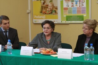 Atheneum Gedanense Novum GUMed. Konferencja prasowa podsumowująca pierwszy rok funkcjonowania "Programu zdrowotnego w zakresie prewencji i wczesnego wykrywania chorób cywilizacyjnych u dzieci i młodzieży". Nz. (od lewej) Prof. Barbara Kamińska, Zastępca Prezydenta Gdańska Ewa Kamińska, Dr Tadeusz Jędrzejczyk, Prof. Małgorzata Myśliwiec, Dyrektor Marek Jankowski.