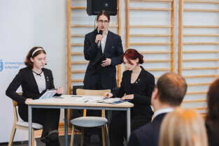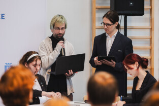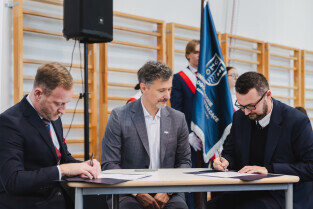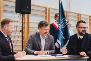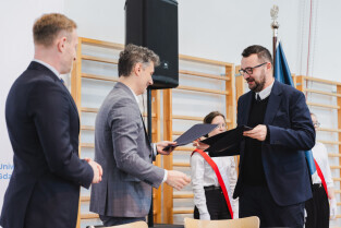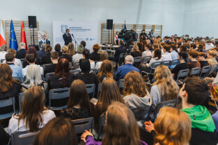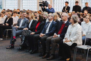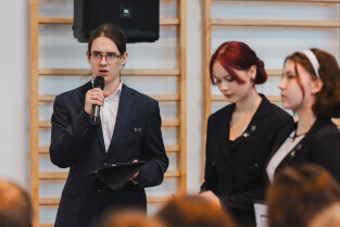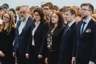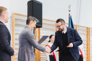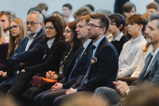 Gdańsk, ul. Traugutta. 6. rocznica śmierci prezydenta Gdańska. Dzień Patrona - Uniwersyteckie Liceum Ogólnokształcące im. Pawła Adamowicza. Nz. poseł Piotr Adamowicz