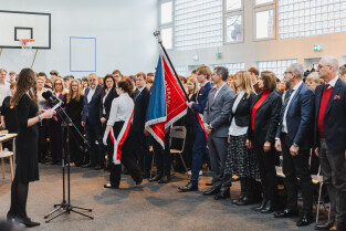 Gdańsk, ul. Traugutta. 6. rocznica śmierci prezydenta Gdańska. Dzień Patrona - Uniwersyteckie Liceum Ogólnokształcące im. Pawła Adamowicza. Europosłanka Magdalena Adamowicz