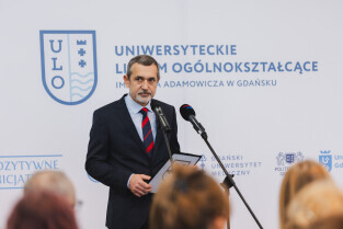 Gdańsk, ul. Traugutta. 6. rocznica śmierci prezydenta Gdańska. Dzień Patrona - Uniwersyteckie Liceum Ogólnokształcące im. Pawła Adamowicza. Nz. Dyrektor Waldemar Kotowski
