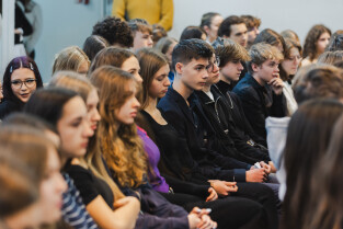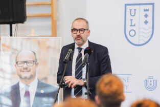 Gdańsk, ul. Traugutta. 6. rocznica śmierci prezydenta Gdańska. Dzień Patrona - Uniwersyteckie Liceum Ogólnokształcące im. Pawła Adamowicza. Nz. Dr hab. Adam Świerżewski rektor ASP w Gdańsku