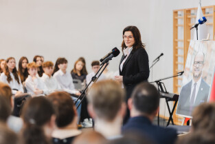 Gdańsk, ul. Traugutta. 6. rocznica śmierci prezydenta Gdańska. Dzień Patrona - Uniwersyteckie Liceum Ogólnokształcące im. Pawła Adamowicza. Nz. Prezydent Gdańska, Aleksandra Dulkiewicz