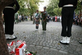 70. rocznica powstania Polskiego Państwa Podziemnego i Szarych Szeregów. Uroczystości pod pomnikiem Państwa Podziemnego na Targu Rakowym i Harcerzy Gdańskich