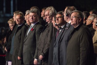 Gdańsk Westerplatte. Uroczystość upamiętniająca 70. rocznicę zakończenia II Wojny Światowej. Nz. Prezydent Ukrainy Petro Poroszenko