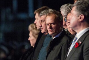 Gdańsk Westerplatte. Uroczystość upamiętniająca 70. rocznicę zakończenia II Wojny Światowej. Nz. Przewodniczący Rady Europejskiej Donald Tusk