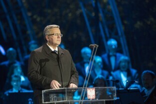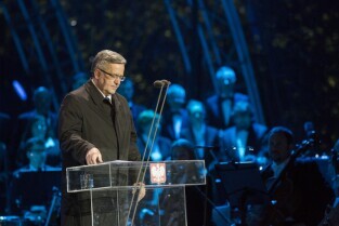Gdańsk Westerplatte. Uroczystość upamiętniająca 70. rocznicę zakończenia II Wojny Światowej. Nz. Prezydent RP Bronisław Komorowski