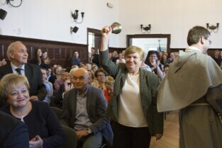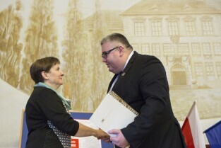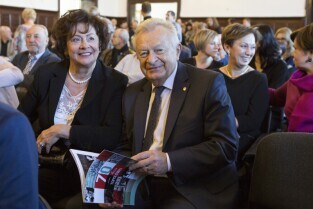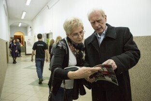 70-lecie III Liceum Ogólnokształcącego. Gdańsk Wrzeszcz, ul. Topolowa. Nz. Jan Zarębski z żoną Teresą