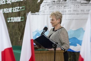 Gdańsk Niedźwiednik. Uroczystość 70-lecia Szkoły Podstawowej nr 38 im. Generała Stanisława Maczka. Nz. Dyrektor ZKPiG nr 24 Joanna Reszczyńska