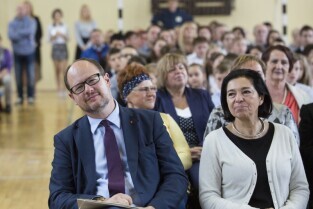 Gdańsk Niedźwiednik. Uroczystość 70-lecia Szkoły Podstawowej nr 38 im. Generała Stanisława Maczka. Nz. Prezydent Gdańska Paweł Adamowicz i Radna Miasta Gdańska Małgorzata Chmiel