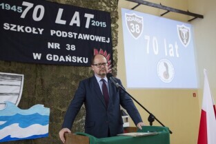 Gdańsk Niedźwiednik. Uroczystość 70-lecia Szkoły Podstawowej nr 38 im. Generała Stanisława Maczka. Nz. Prezydent Gdańska Paweł Adamowicz