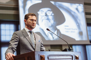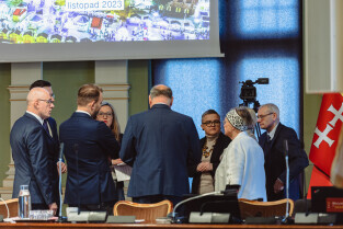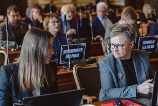 Gdańsk, ul Wały jagiellońskie. 70. sesja Rady Miasta Gdańska. Nz. radny Michał Hajduk