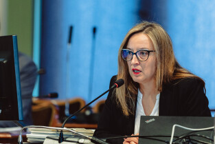 Gdańsk, ul Wały jagiellońskie. 70. sesja Rady Miasta Gdańska. Nz. radna Beata Jankowiak