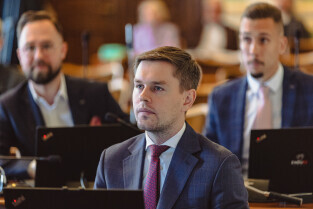 Gdańsk, ul Wały jagiellońskie. 70. sesja Rady Miasta Gdańska. Nz. Mateusz Skarbek - wiceprzewodniczący Rady Miasta