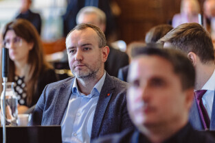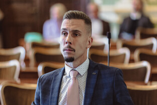 Gdańsk, ul Wały jagiellońskie. 70. sesja Rady Miasta Gdańska. Nz. radny Łukasz Bejm
