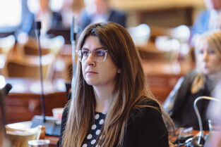 Gdańsk, ul Wały jagiellońskie. 70. sesja Rady Miasta Gdańska. Nz. radna Beata Dunajewska