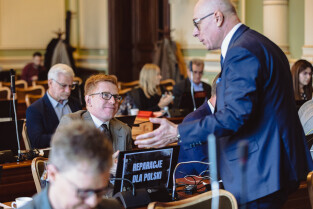 Gdańsk, ul Wały jagiellońskie. 70. sesja Rady Miasta Gdańska. Nz. radny Wojciech Błaszkowski